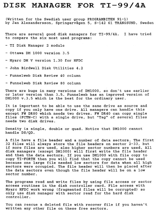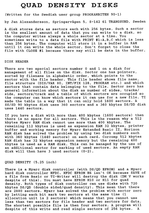 | English translations | Review Disk Managers Review Sector EditorsMore on Quad Density Disks More on the PGRAM Card Review DIJIT AVPC 80 Column Card Review Myarc HFDS Hard Disk Controller |