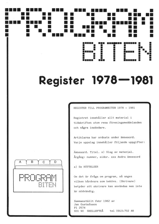 Programbiten 1982 nr 1 Bilaga 2 REGISTER TILL PROGRAMBITEN 1978-1981 |